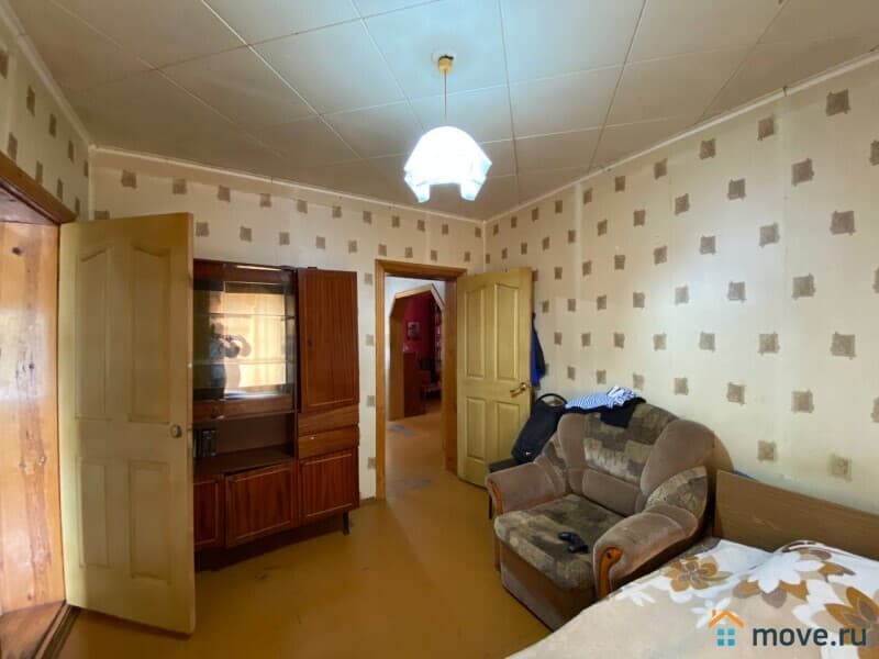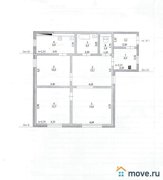 Трехкомнатная квартира в кирпичном доме. ОП-68,1 кв.м. с кровлей из шифера. В квартире три жилые комнаты(15,0/12,7/10,2), коридор-12,1, кухня-6,8, прихожая-4,9, ванна-4,5, туалет-1,9. Полы деревянные, окна деревянные, высота потолков- 2,7 м. В квартире имеется автономное отопление, центральное водоснабжение, индивидуальное канализация (сливная яма). Квартира продается частично с мебелью. Во дворе небольшой участок земли.