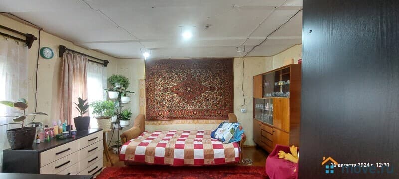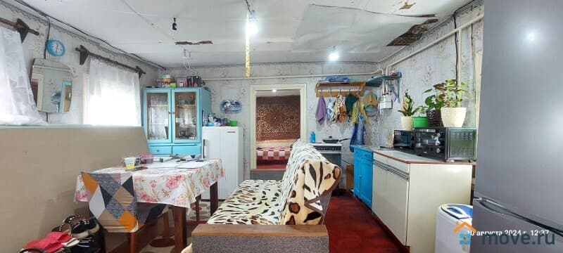 В доме три жилые комнаты(14.4/14.0/12.3) кв.м., кухня-10.9 кв.м., сан.узел, не отапливаемая веранда, кладовая. Окна пластиковые, полы – деревянные покрыты линолеумом. Потолки деревянные, высота потолков -2,4 м., автономное газовое отопление, электричество, индивидуальное водоснабжение (скважина), имеется возможность подключения к центральному водопроводу, канализация (сливная яма).